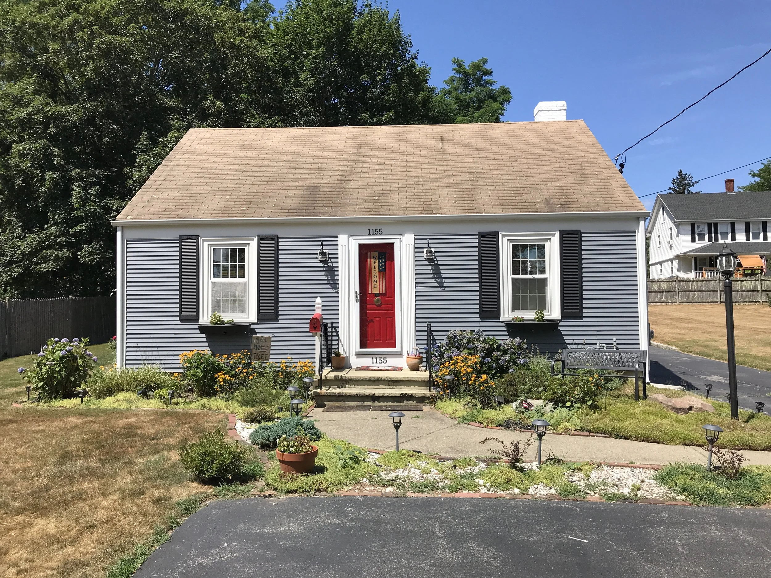 This modest cape house underwent a significant transformation with the addition of a substantial rear structure. This expansion includes a living room with a cathedral ceiling and transom windows, a newly constructed dining room, and an expansive kitchen. The addition features ample glass windows that offer views of the backyard and the newly installed patio. The design was meticulously crafted to accommodate the reconfiguration of the second-floor stairway, which now creates a striking focal point with a second-floor dormer that illuminates the new foyer. The bluestone entrance porch, adorned with oversized post and beam columns, imparts a streetwise presence that was previously absent from the property.